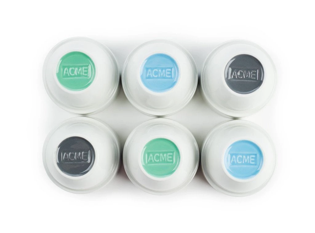 Colour: Each inner contains 6 white bowls with coloured bases, 2x green, 2x blue, 2x grey
