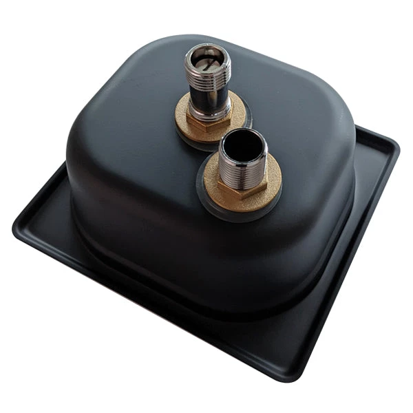 This rinser can be built in the bench or on top of the bench, with the help of the artisan barista jug rinser stand.