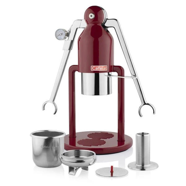 If you can supply fresh ground coffee, hot water, and a little strength to provide pressure, you can make cafe quality espresso at home, in the office, or anywhere you like with the Cafelat Robot.