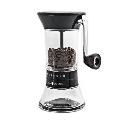 The Handground is the first manual coffee grinder to feature a side-mounted handle. This handle is easy and natural to turn, which takes much of the pain and inconvenience out of manual grinding.