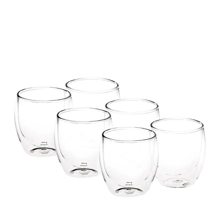 These are the Bodum PAVINA double wall glasses. Designed for both hot and cold drinks – they’re great for everything from hot cocoa to your favourite cocktail. The double wall keeps hot drinks hot and protects your hands, and it keeps cold drinks cold without messy condensation.