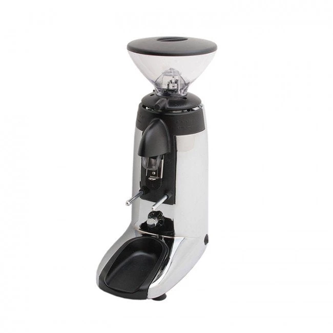 The classic Compak hopper tops the beautiful grinder with a capacity of 200g, and you can have this grinder in matte black, white, or polished silver.