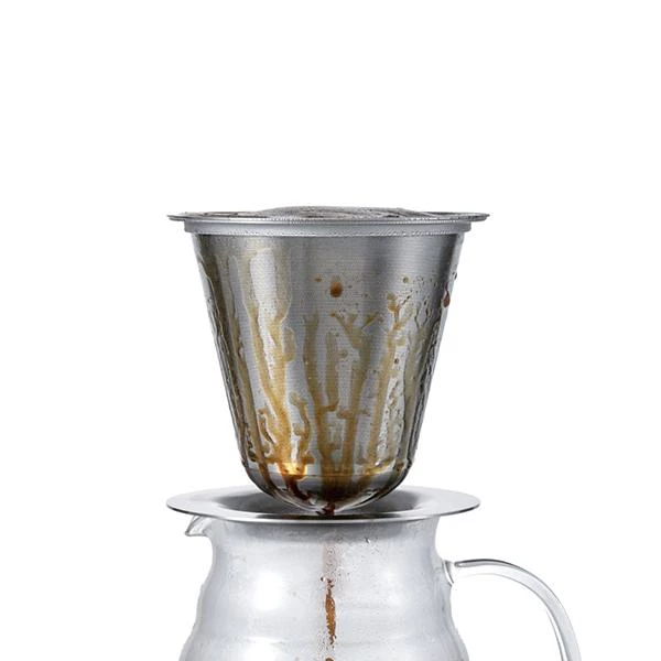 The Hario Kasuya double stainless dripper features newly developed bottom mesh that improves hot water draining allowing you to enjoy a mild and clear taste.