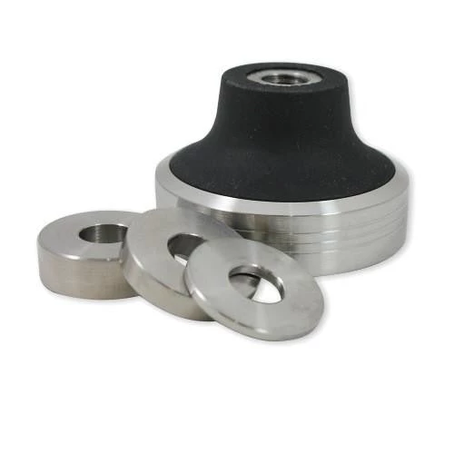 – And a set of 3 stackable straight-sided stainless steel spacers, providing up to 15mm of height adjustment in 8 steps without compromising the tamper’s ergonomics. Because no two hands are the same size, an optimum handle height makes a large difference to the busy barista.