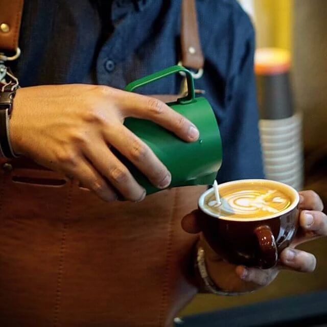 1mm thick food grade stainless steel body which provides better stretch time for texturing milk – this is ideal for 360ml & 60ml (12oz & 20oz) sizes. This thicker grade steel also provides a great weight and professional feel.
